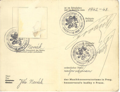 He was born on September 5, 1924 in Horní Jelení near Vysoké Mýto. His father, Antonín Novák, was a civil servant. His mother, Tekla, nee Vlková, was a housewife. They owned a small shop with other relatives, from which they later lost their share. Jiřík was an only child. His father, out of passion, played the violin as a self-taught musician and earned extra money at village events and also had several students. Jiří’s first teacher was Professor Böhm, the school principal in Vysoké Mýto, a pianist and organist.